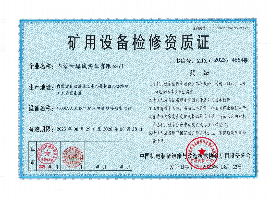 2018年我公司通過中國機電裝備維修與改造技術(shù)協(xié)會礦用設(shè)備分會審核并取得了9項礦用設(shè)備檢修資質(zhì)證書。公司本著“誠信為本 質(zhì)量為先 全心全意為客戶 ”的服務(wù)理念,圓滿完成各個廠礦的機械維修及配套服務(wù),期待與您共同合作。
